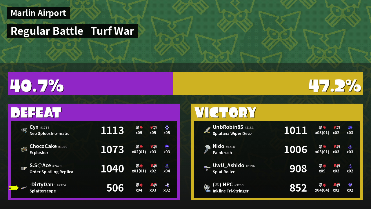 | Mode | Turf War - Regular Battle | ||