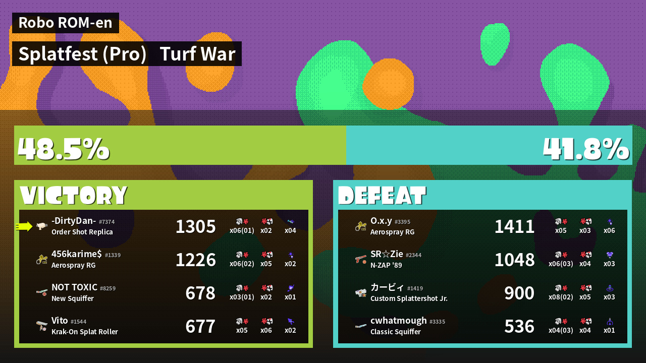 | Mode | Turf War - Splatfest (Pro) | ||