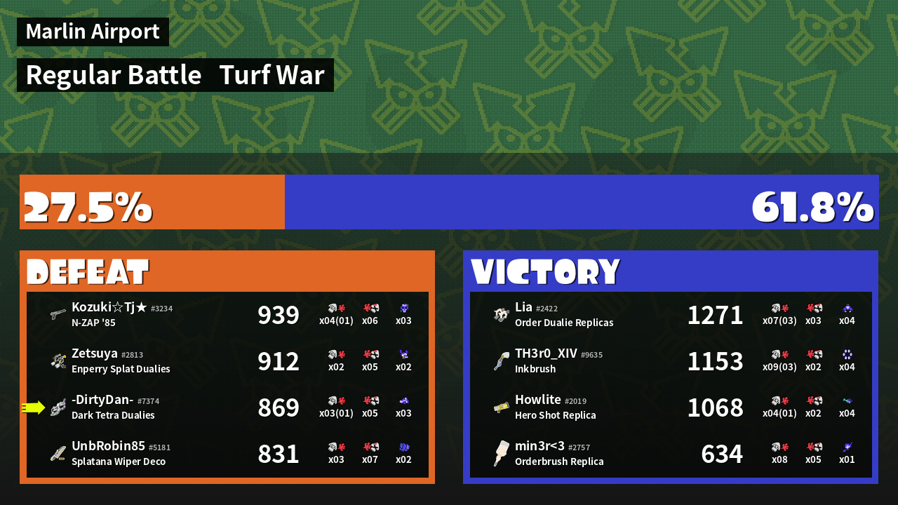 | Mode | Turf War - Regular Battle | ||