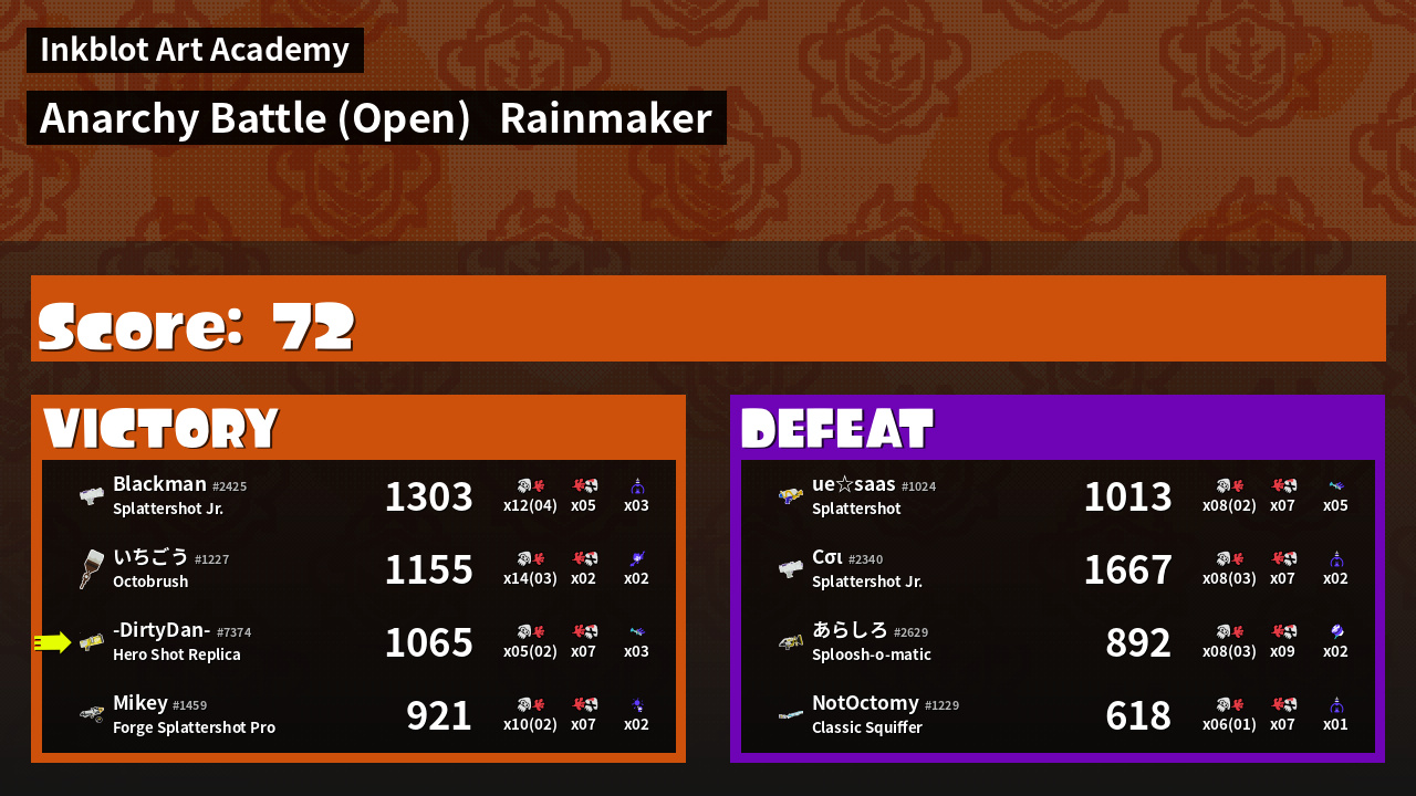 | Mode | Rainmaker - Anarchy Battle (Open) | ||