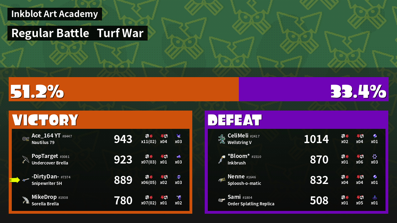 | Mode | Turf War - Regular Battle | ||
