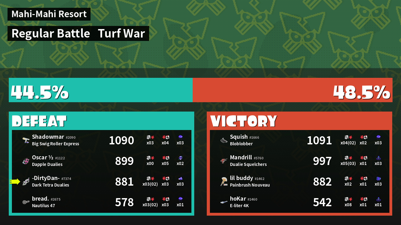 | Mode | Turf War - Regular Battle | ||