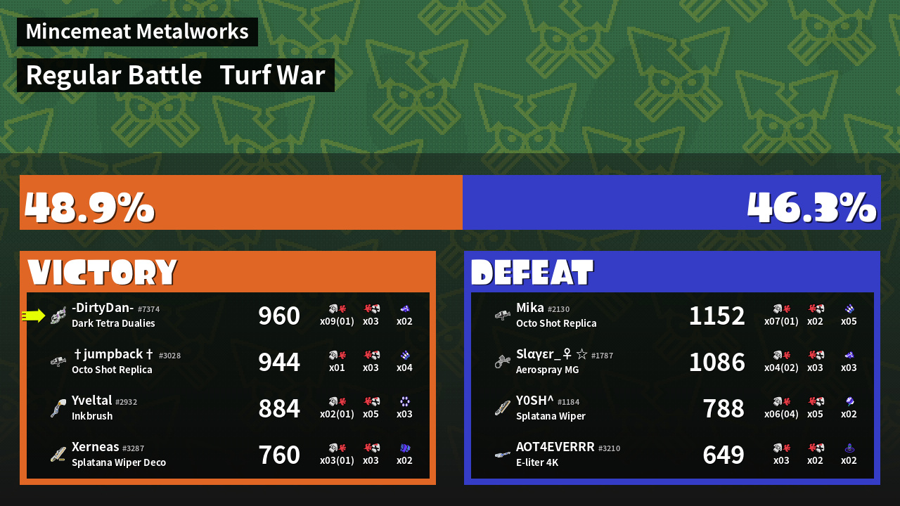 | Medals | #1 Overall Splatter #1 Turf Inker #1 Enemy Splatter | ||