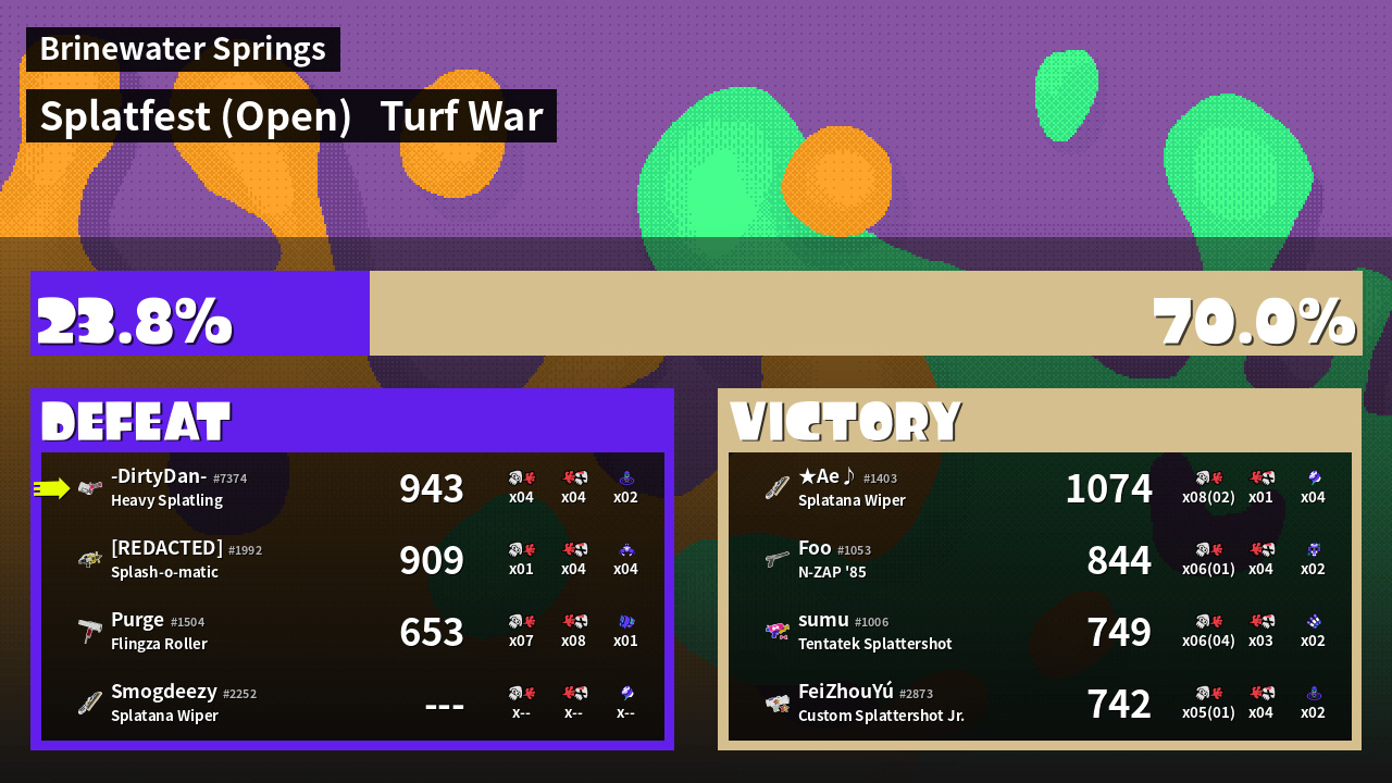 | Mode | Turf War - Splatfest (Open) | ||