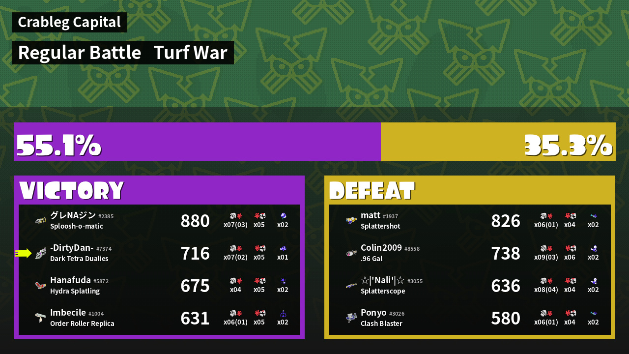 | Mode | Turf War - Regular Battle | ||