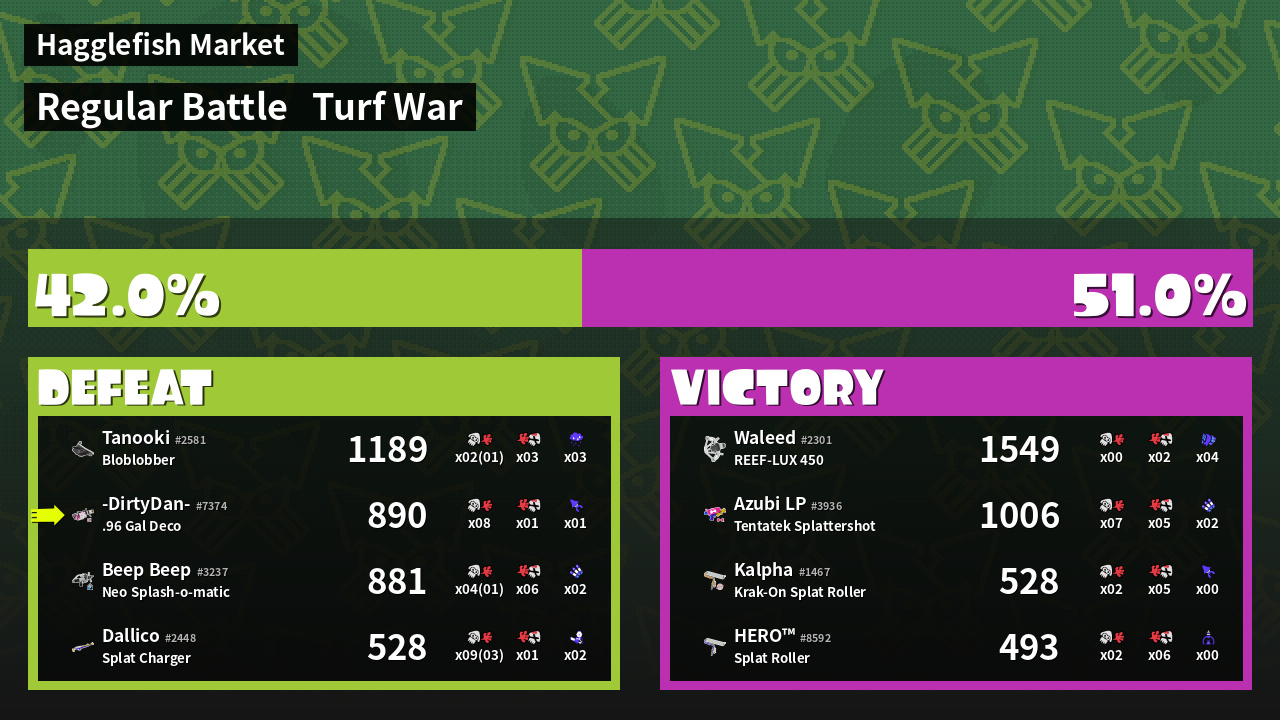 | Mode | Turf War - Regular Battle | ||