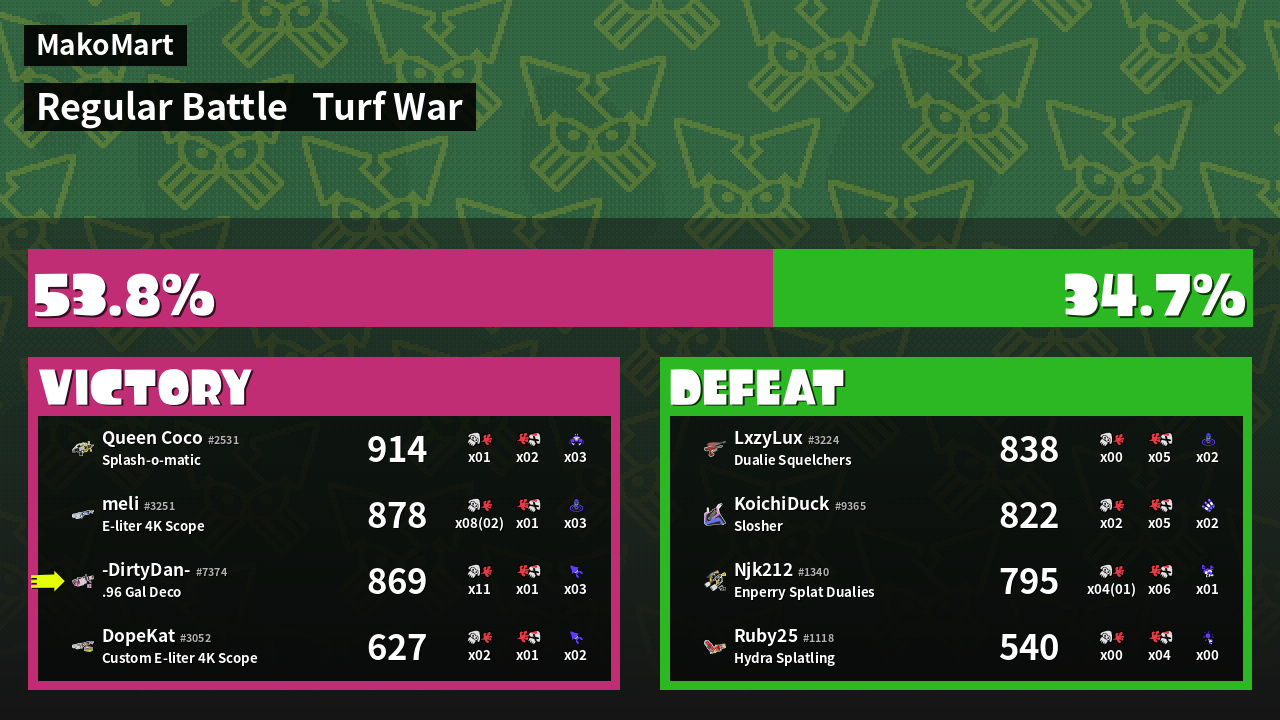 | Mode | Turf War - Regular Battle | ||
