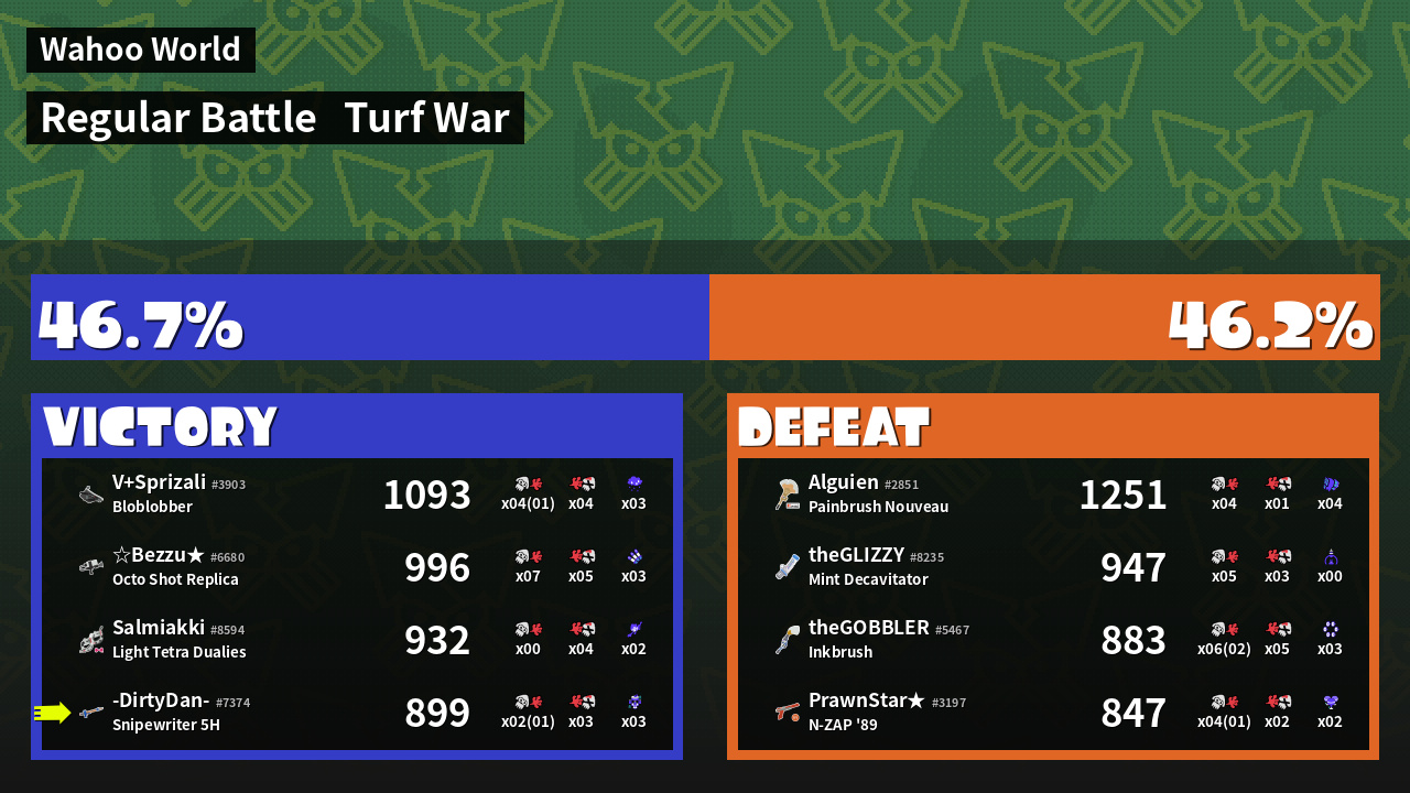 | Mode | Turf War - Regular Battle | ||
