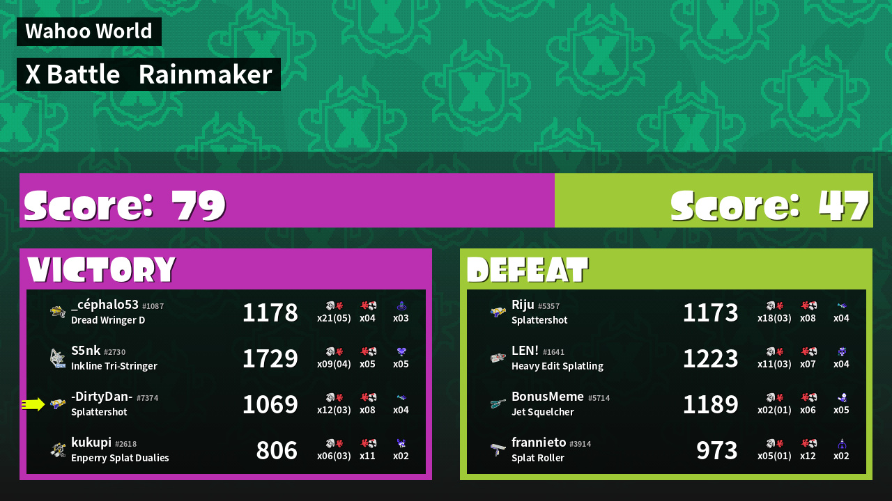 100% Splattershot User -DirtyDan- #7374 |