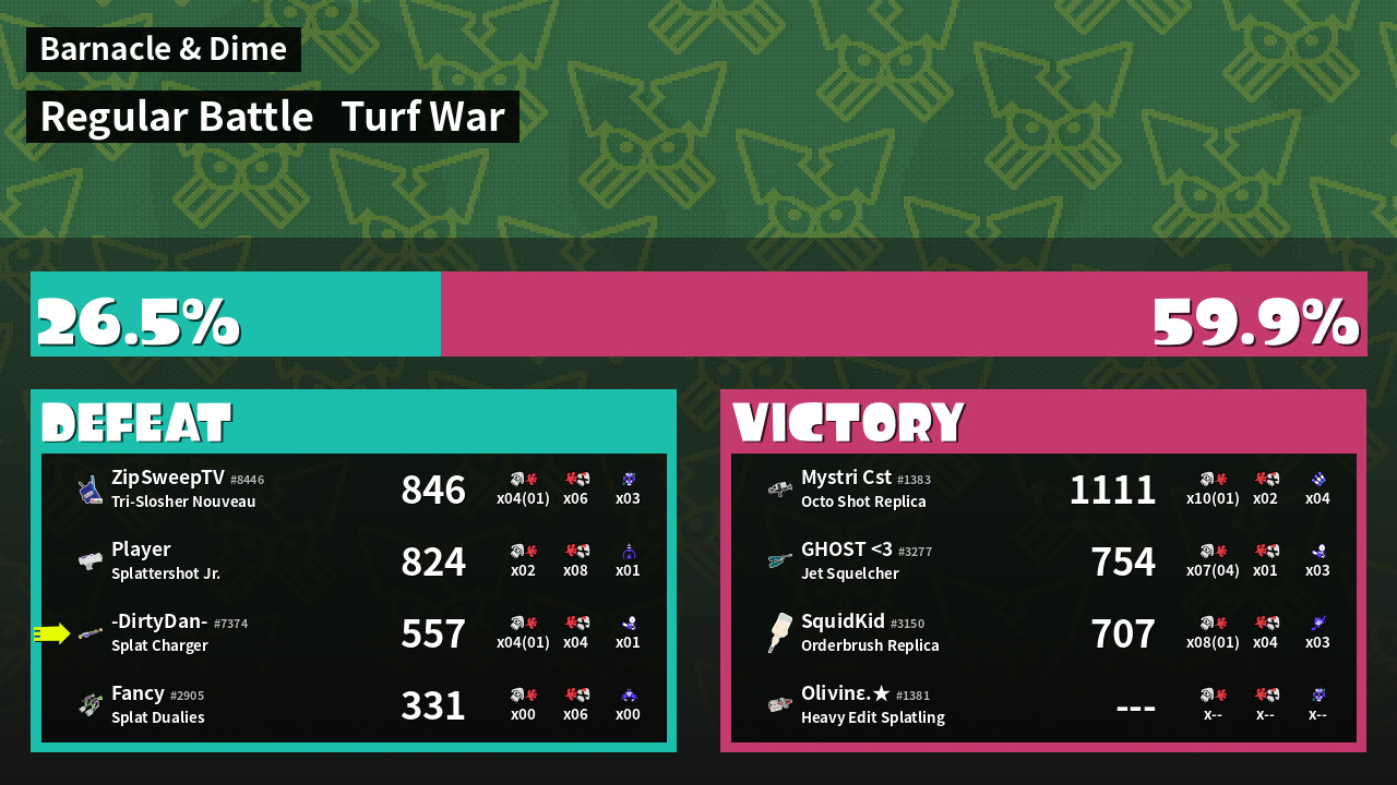 100% Splattershot User -DirtyDan- #7374 |