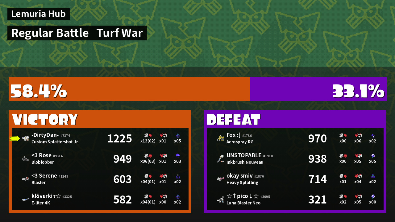 | Medals | #1 Overall Splatter #1 Turf Inker #1 Popular Target | ||