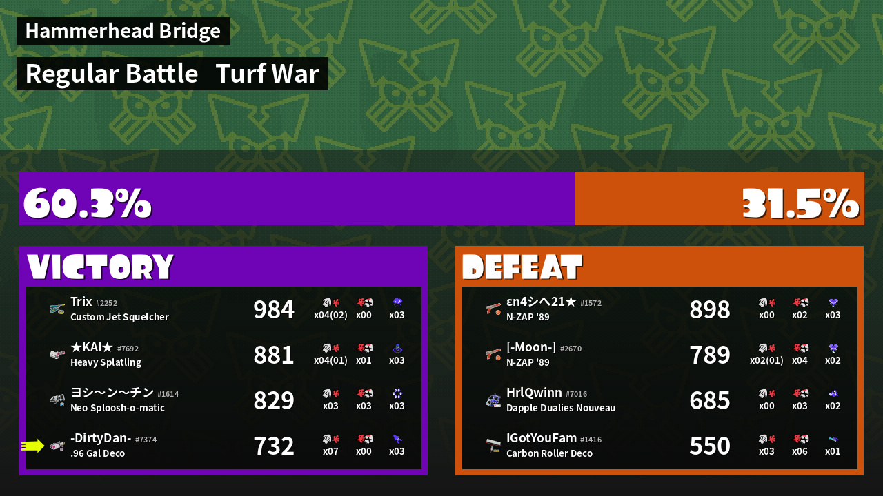 | Mode | Turf War - Regular Battle | ||