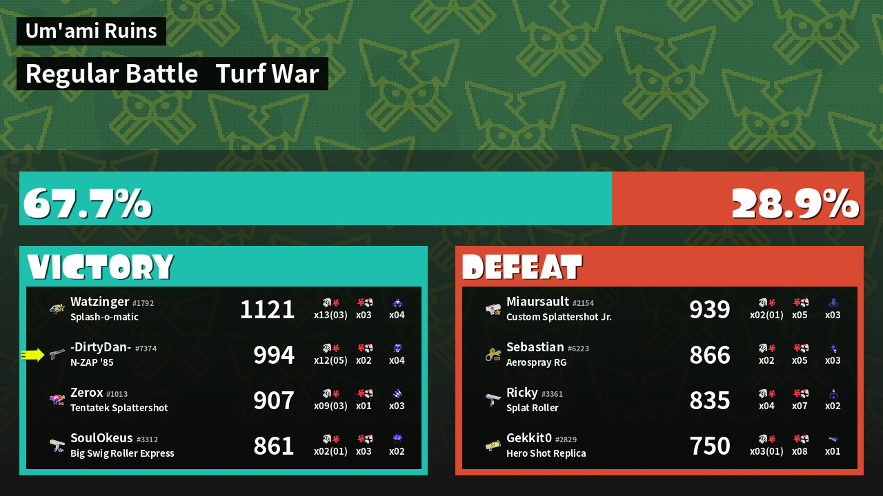 | Mode | Turf War - Regular Battle | ||