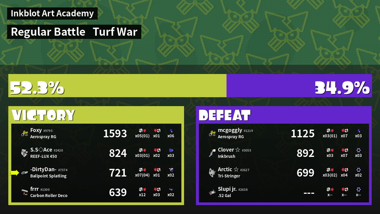 | Mode | Turf War - Regular Battle | ||