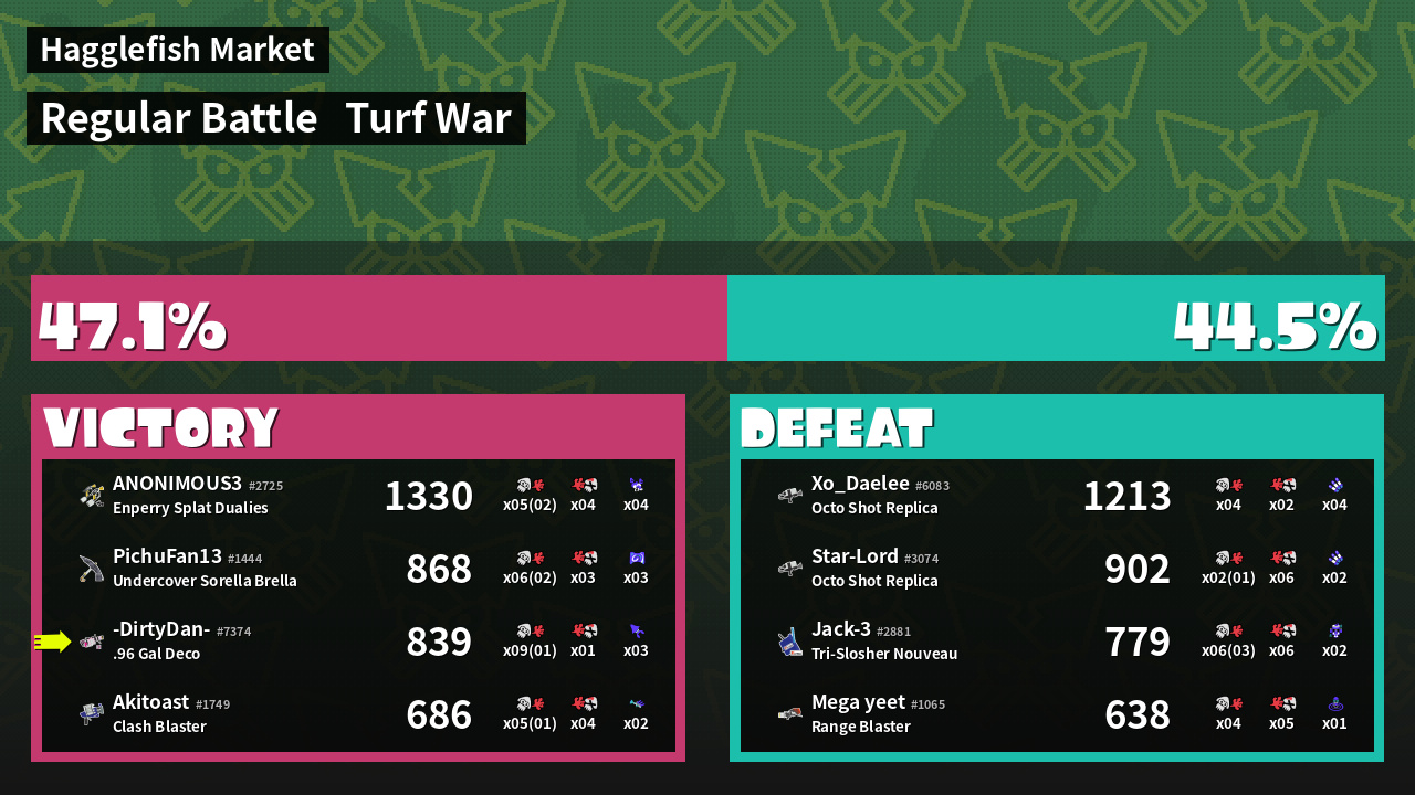 | Medals | #1 Overall Splatter #1 Popular Target #1 Enemy Splatter | ||