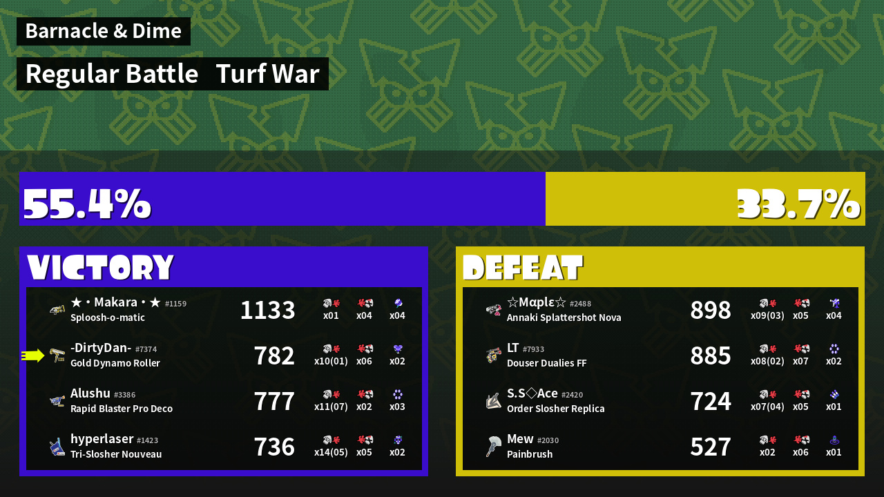 | Mode | Turf War - Regular Battle | ||