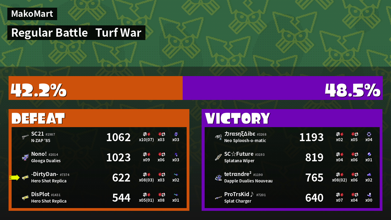 | Mode | Turf War - Regular Battle | ||