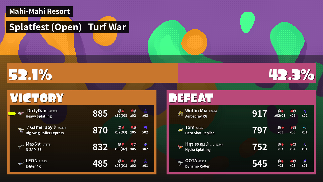 | Medals | #1 Overall Splatter #1 Turf Inker #1 Enemy-Base Inker | ||