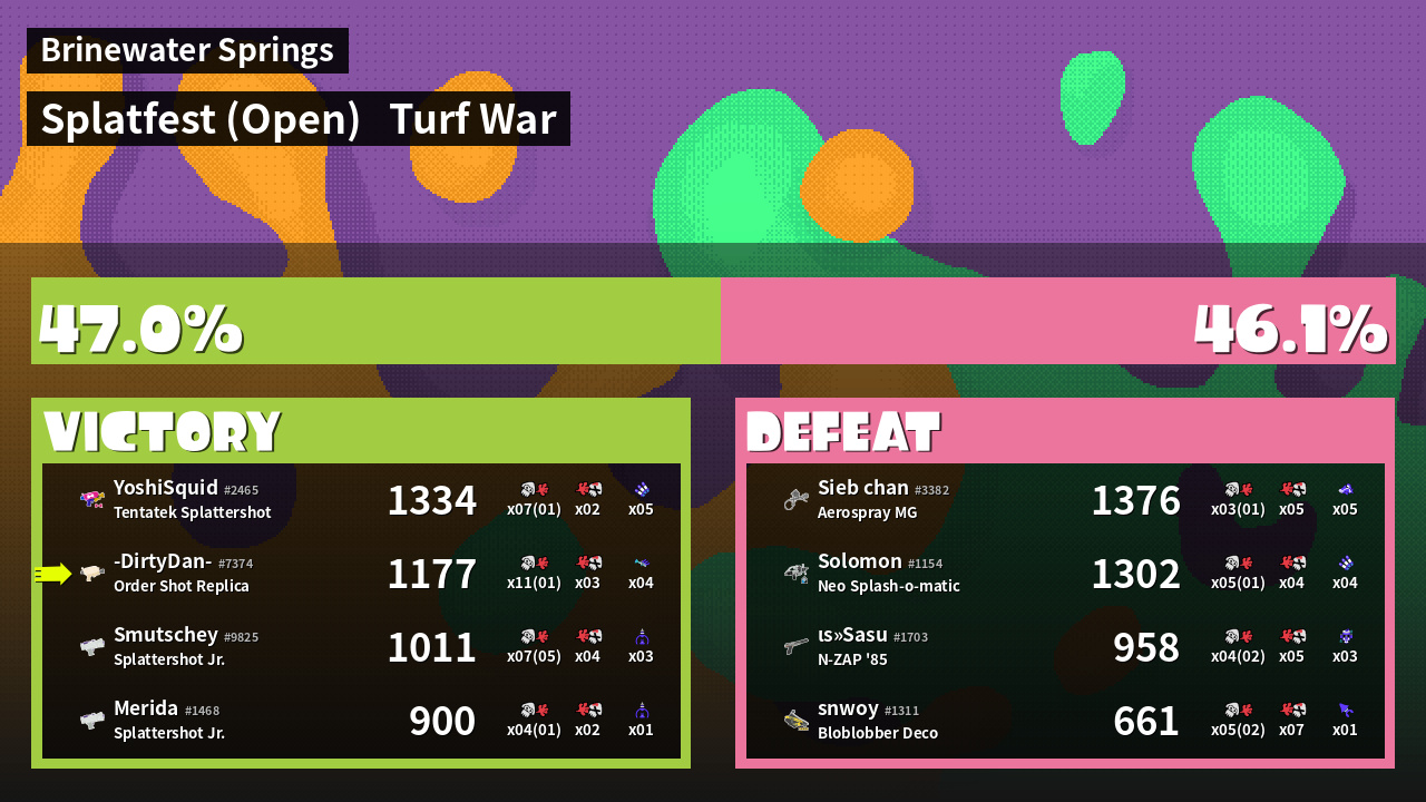 | Medals | #1 Overall Splatter #1 Enemy Splatter First Splat! | ||