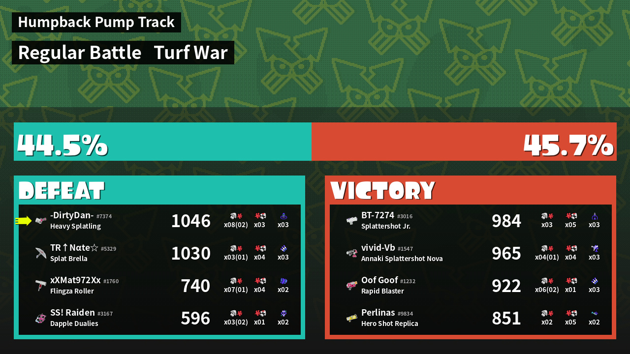 | Mode | Turf War - Regular Battle | ||