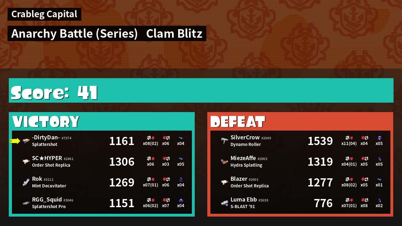 | Mode | Clam Blitz - Anarchy Battle (Series) | ||