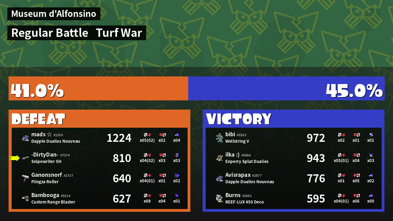 | Medals | #1 Splat Assister #1 Tacticooler User #2 Turf Inker | ||