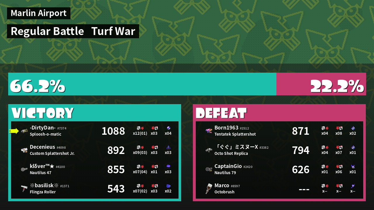 | Mode | Turf War - Regular Battle | ||