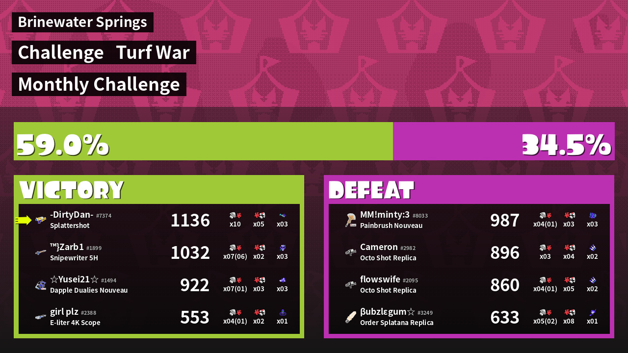 | Medals | #1 Overall Splatter #1 Turf Inker #1 Popular Target | ||