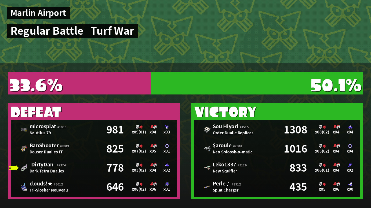 | Mode | Turf War - Regular Battle | ||
