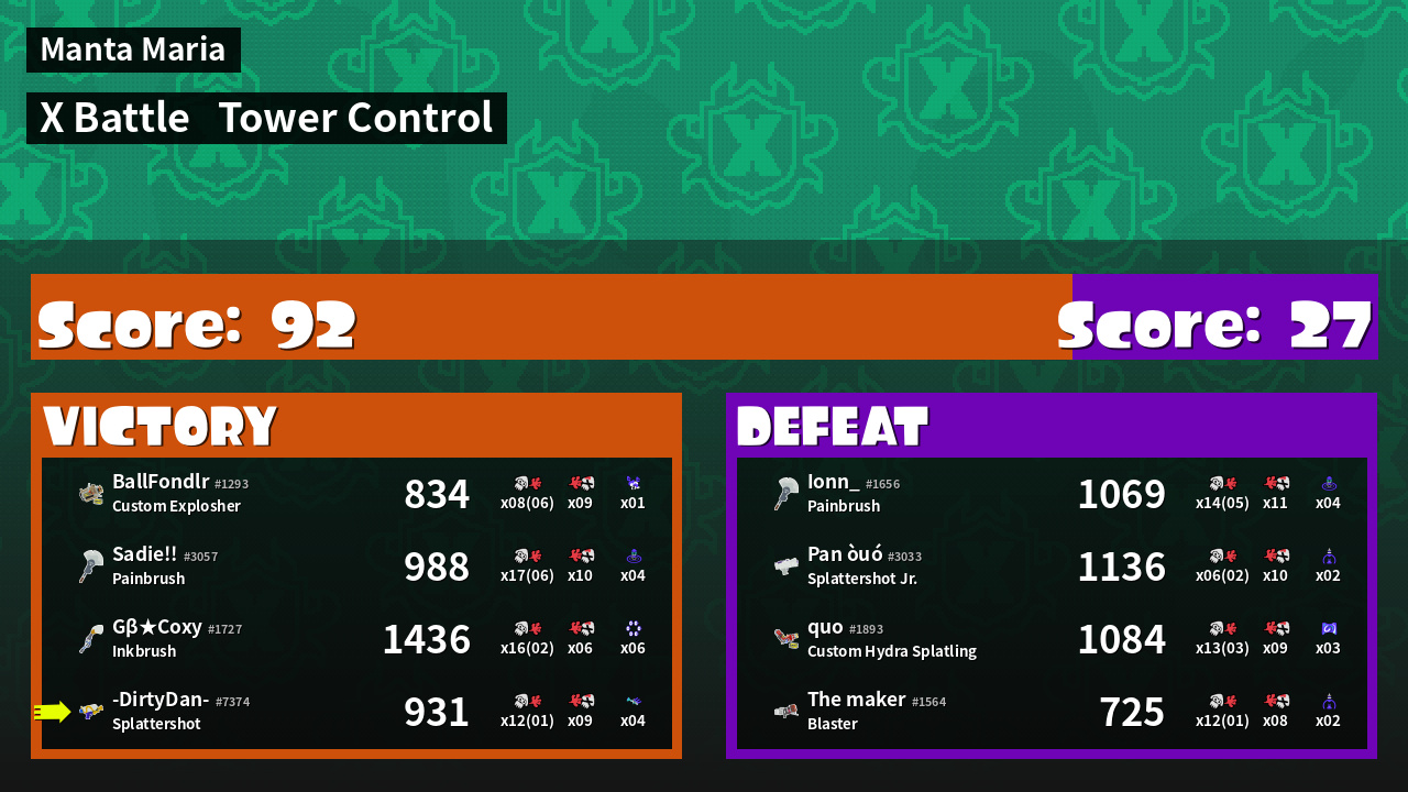 | Weapon | Splattershot ( Suction Bomb / Trizooka) | ||
