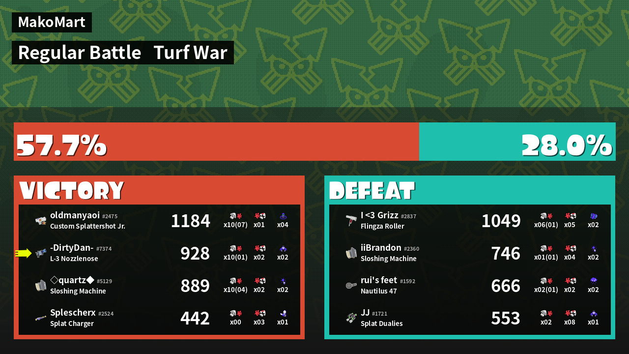 | Medals | #1 Overall Splatter #1 Super Jump Spot #1 Enemy Splatter | ||