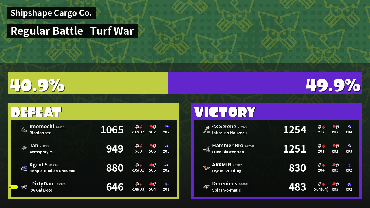 100% Splattershot User -DirtyDan- #7374 |