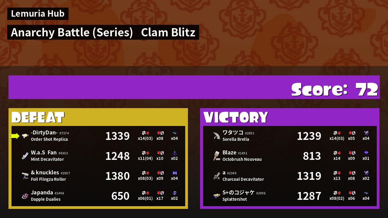 | Mode | Clam Blitz - Anarchy Battle (Series) | ||