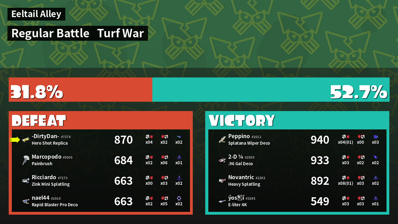 | Medals | #1 Overall Splatter #1 Turf Inker #1 Popular Target | ||