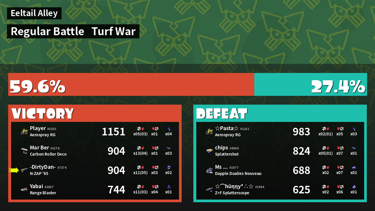 | Medals | #1 Splat Assister #1 Base Defender #1 Tacticooler User | ||