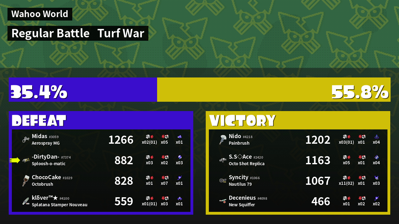 | Medals | #1 Overall Splatter #1 Enemy-Base Inker #1 Enemy Splatter | ||