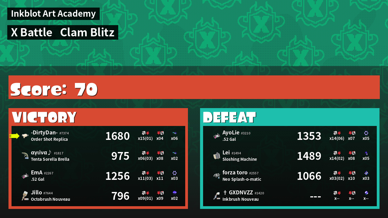 | Medals | #1 Overall Splatter #1 Clam Carrier #1 Turf Inker | ||