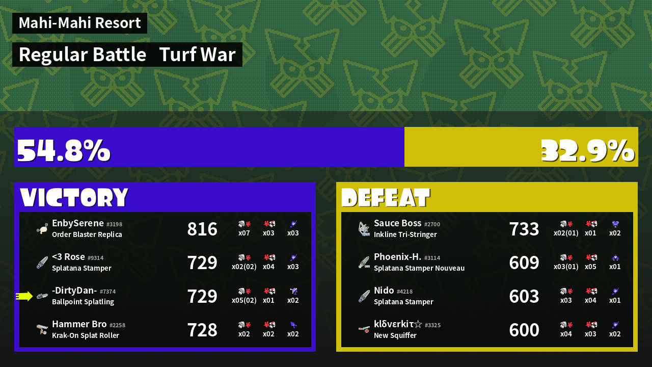 | Mode | Turf War - Regular Battle | ||
