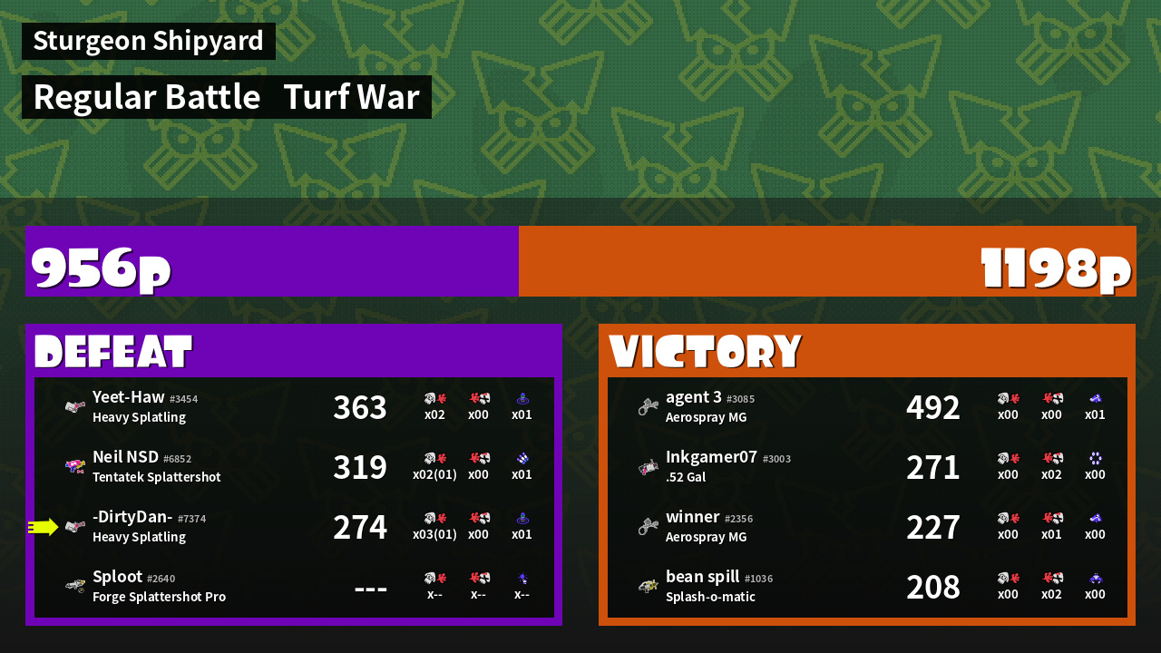 | Mode | Turf War - Regular Battle | ||