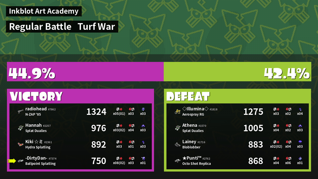 | Mode | Turf War - Regular Battle | ||