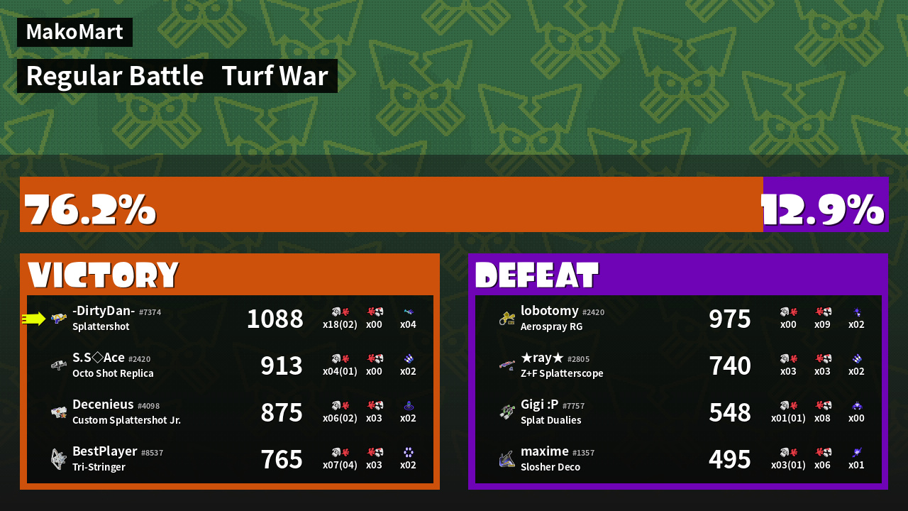 | Medals | #1 Overall Splatter #1 Turf Inker #1 Popular Target | ||