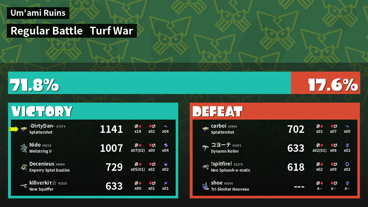 | Mode | Turf War - Regular Battle | ||