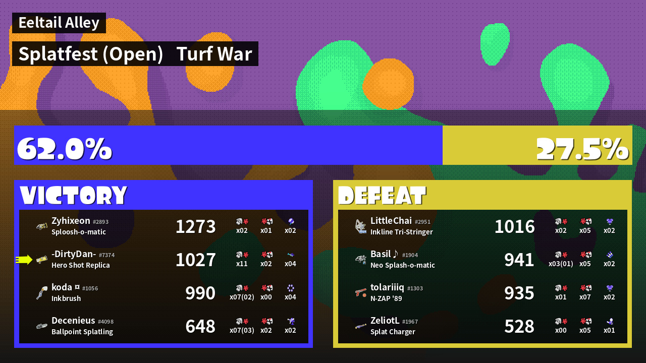 | Medals | #1 Overall Splatter #1 Enemy-Base Inker #1 Enemy Splatter | ||
