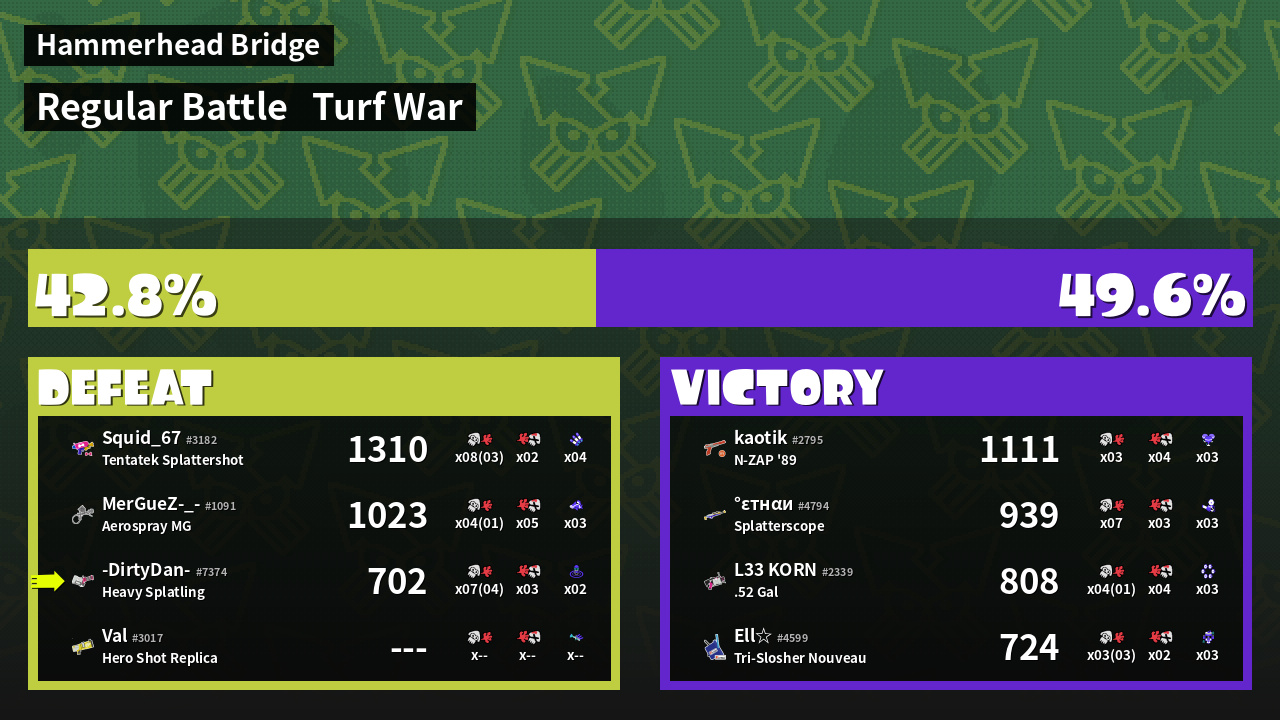 | Medals | #1 Enemy-Base Inker #1 Splat Assister #1 Base Defender | ||