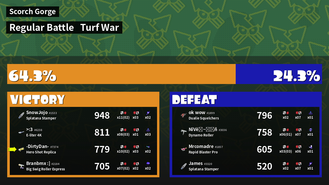 | Mode | Turf War - Regular Battle | ||