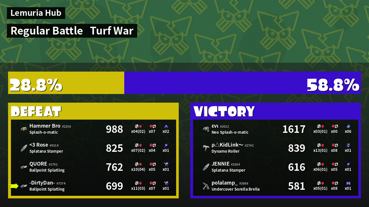 | Mode | Turf War - Regular Battle | ||