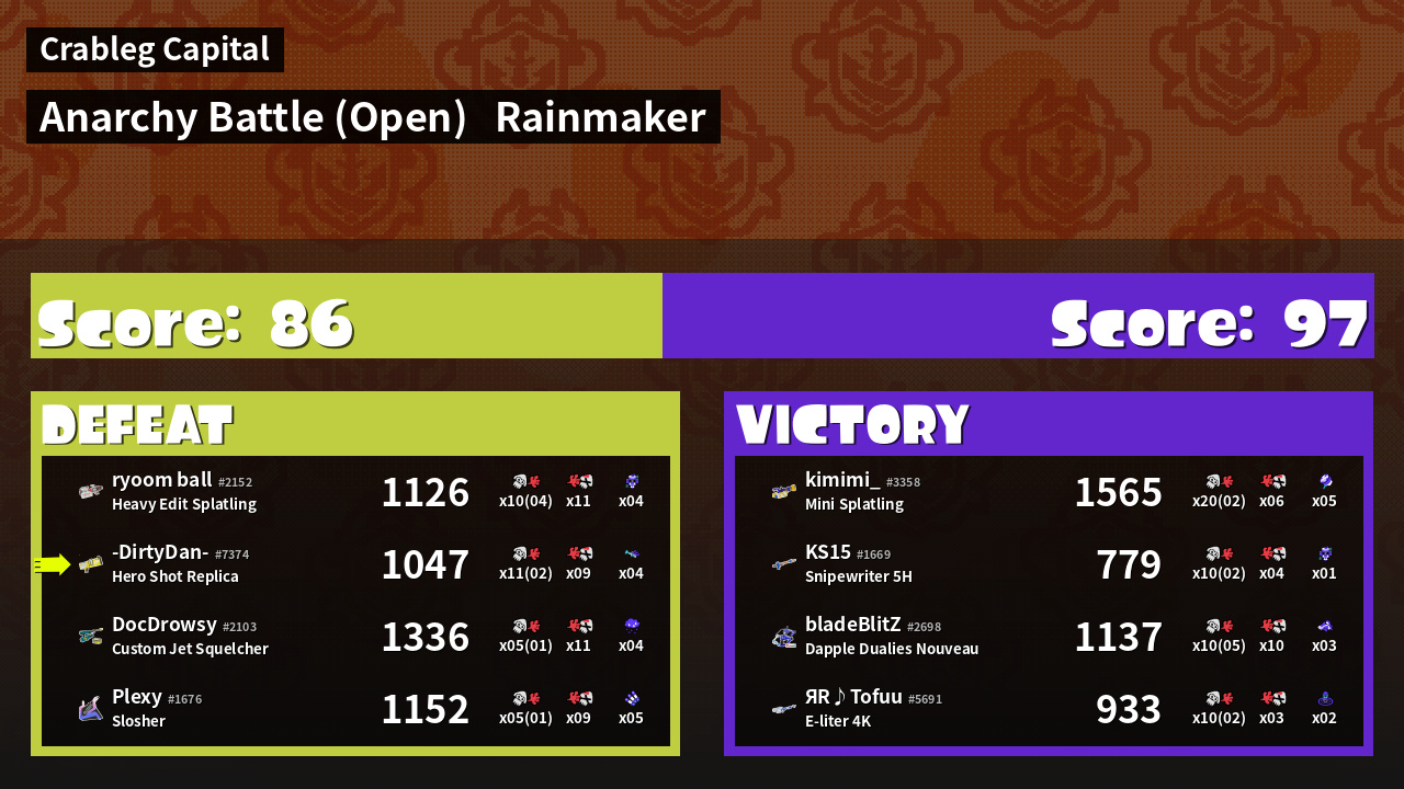 | Mode | Rainmaker - Anarchy Battle (Open) | ||