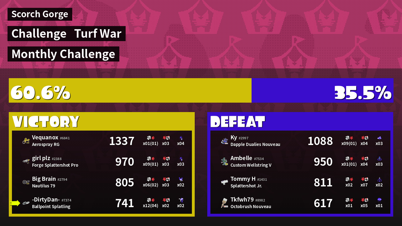 | Medals | #1 Overall Splatter #1 Super Jump Spot #1 Enemy Splatter | ||