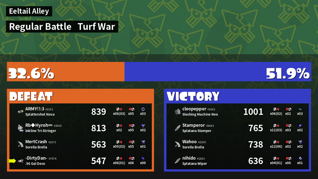 | Mode | Turf War - Regular Battle | ||