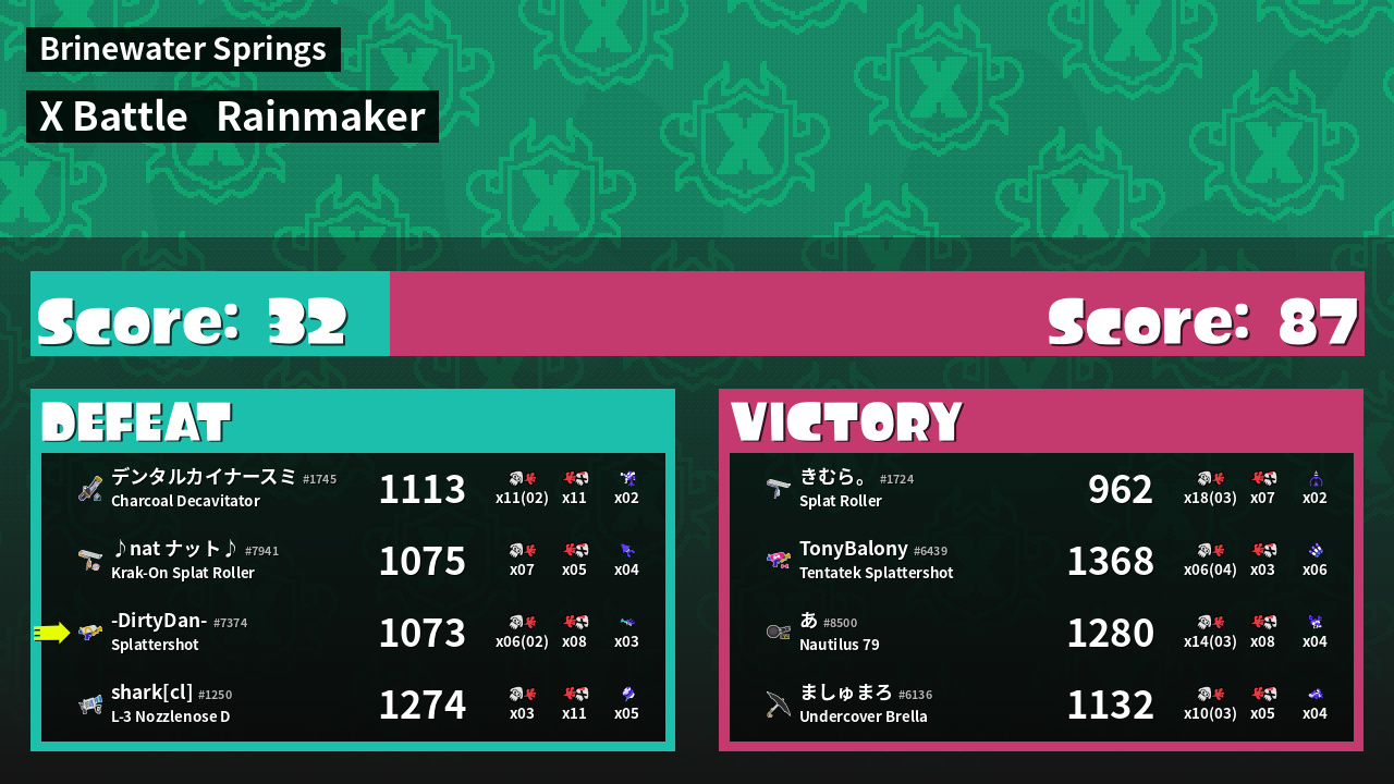 | Medals | #1 Splat Assister #1 Ink Consumer First Splat! | ||